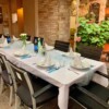 Pýchou našej reštaurácie je krytá terasa. Počas chladnejších mesiacov sa mení na útulnú zimnú záhradu a v lete poskytuje príjemný chládok. Terasu sme navrhli tak, aby ste sa v nej so svojimi najbližšími cítili príjemne, skoro ako doma.